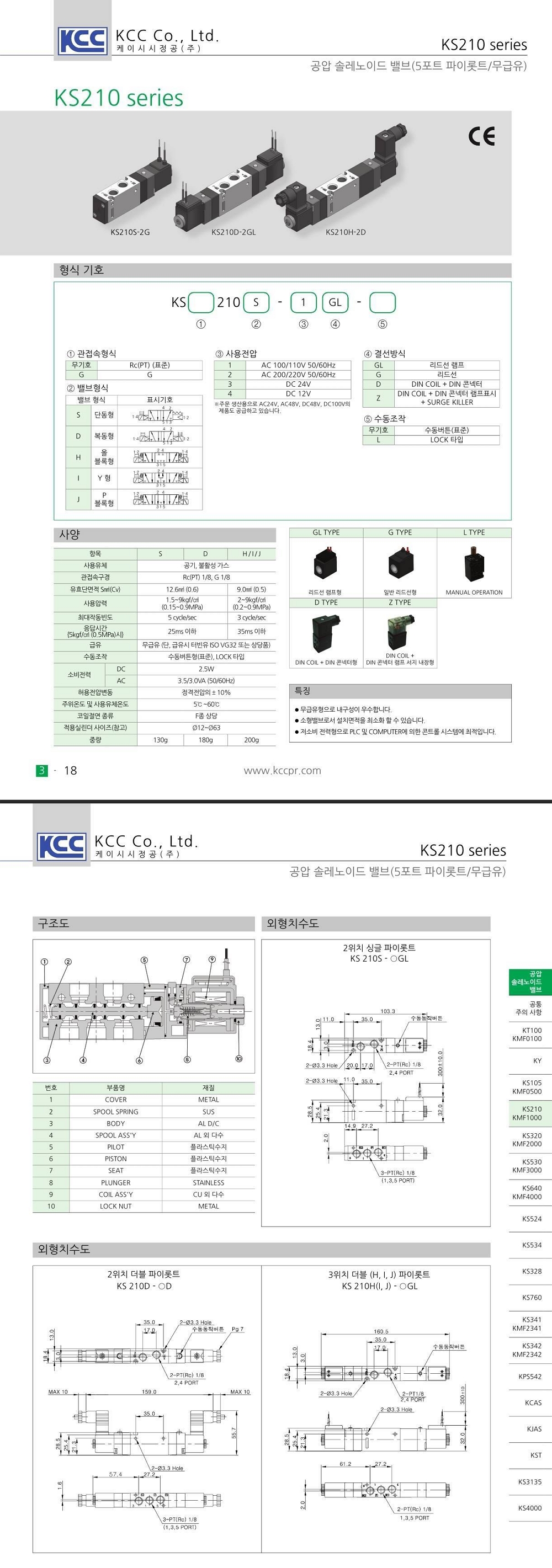 KS210 시리즈 5포트 3위치 (올블록,Y,P블록) Rc(PT) 1/8 파이롯트/무급유