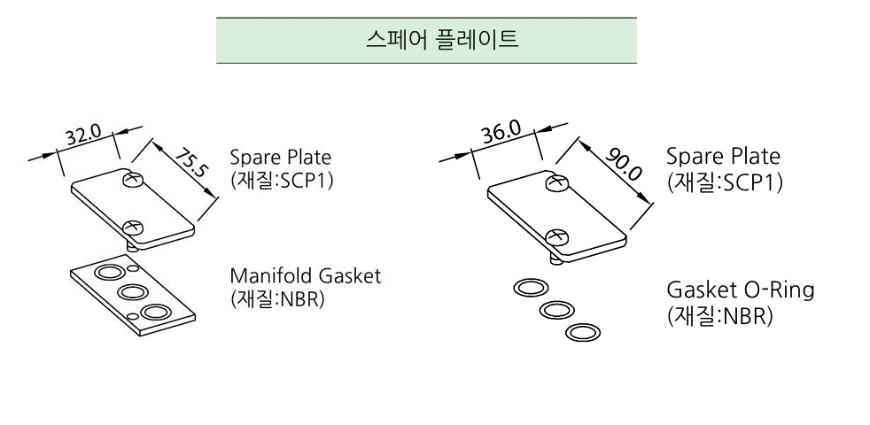 | 상세정보 | 스페어플레이트(SCP1) 와 Gasket(NBR) 또는 Gasket O-ring(NBR) 구성 |