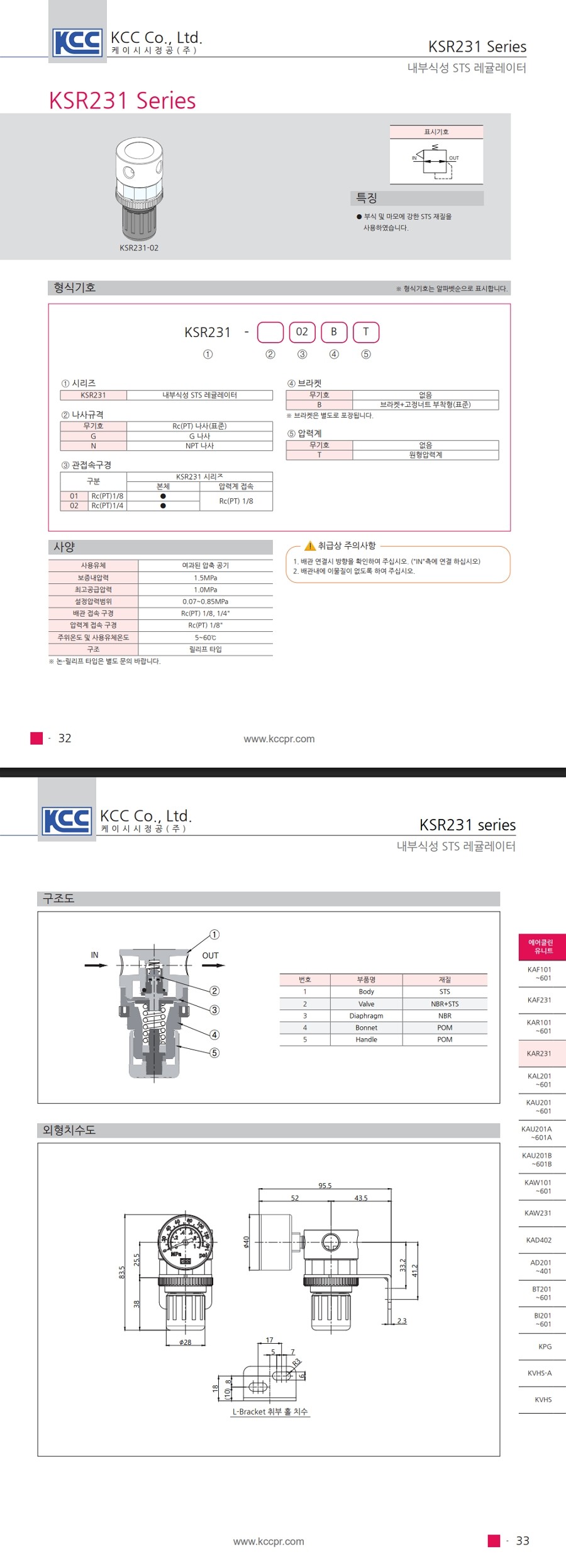 KSR231 시리즈 STS316 몸체 0.07~0.85 Mpa, Rc(PT) 1/8, 1/4