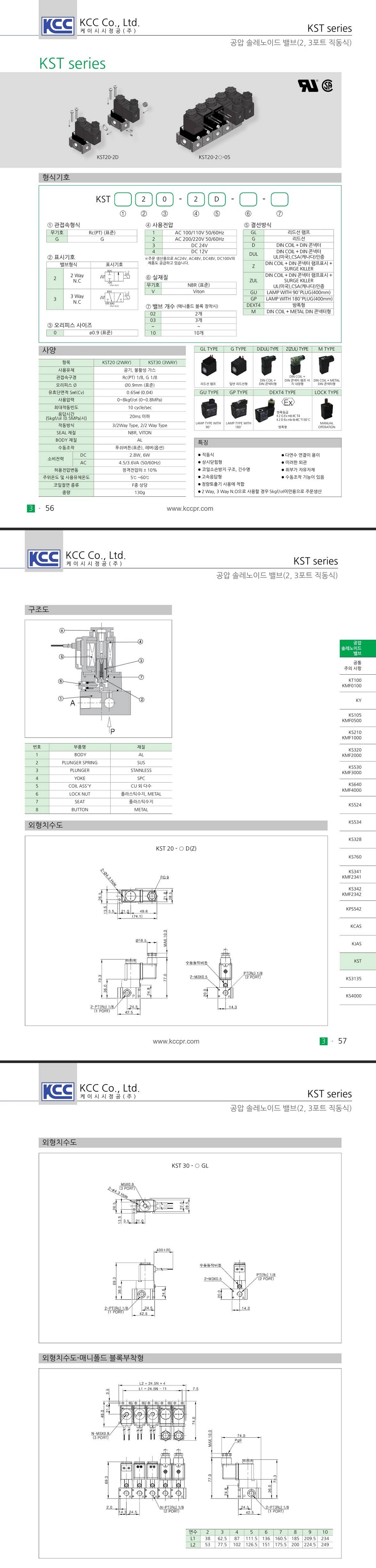 KST 시리즈 2포트 3포트 직동식 Rc(PT) 1/8 오리피스mm 0.9