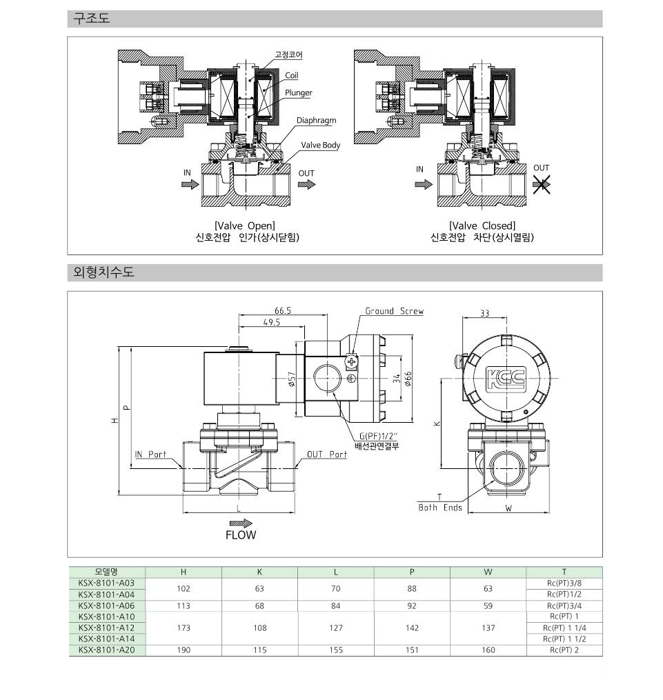 | 체크포인트 | KSX8000 용 방폭 코일만입니다. 한국가스안전공사 안전인증(번호 16-GA2BO-0447X) 획득 밸브입니다. (제 1종 및 2종 위험장소 설치 사용 단, 0종 장소 사용 불가) 케이블 인입부는 안전인증 방폭 케이블그랜드 및 씰링 피팅류를 사용하십시오. [전선관 규격 G(PF) 1/2] |