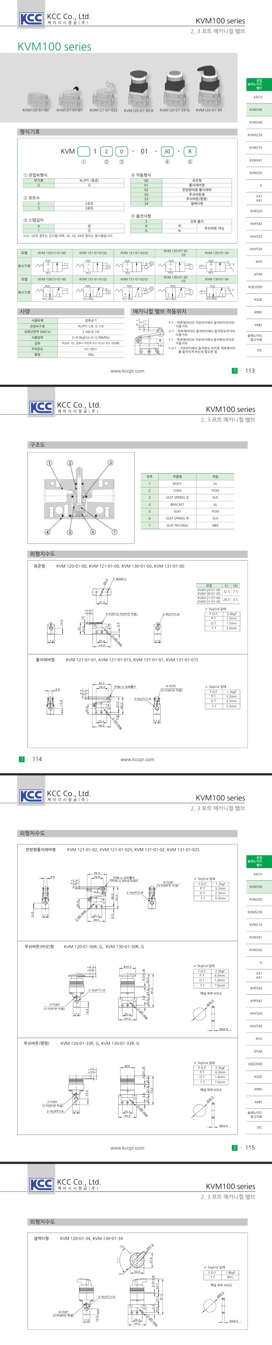 KVM100 Rc(PT) 1/8, 2포트 3포트 메카니컬 밸브