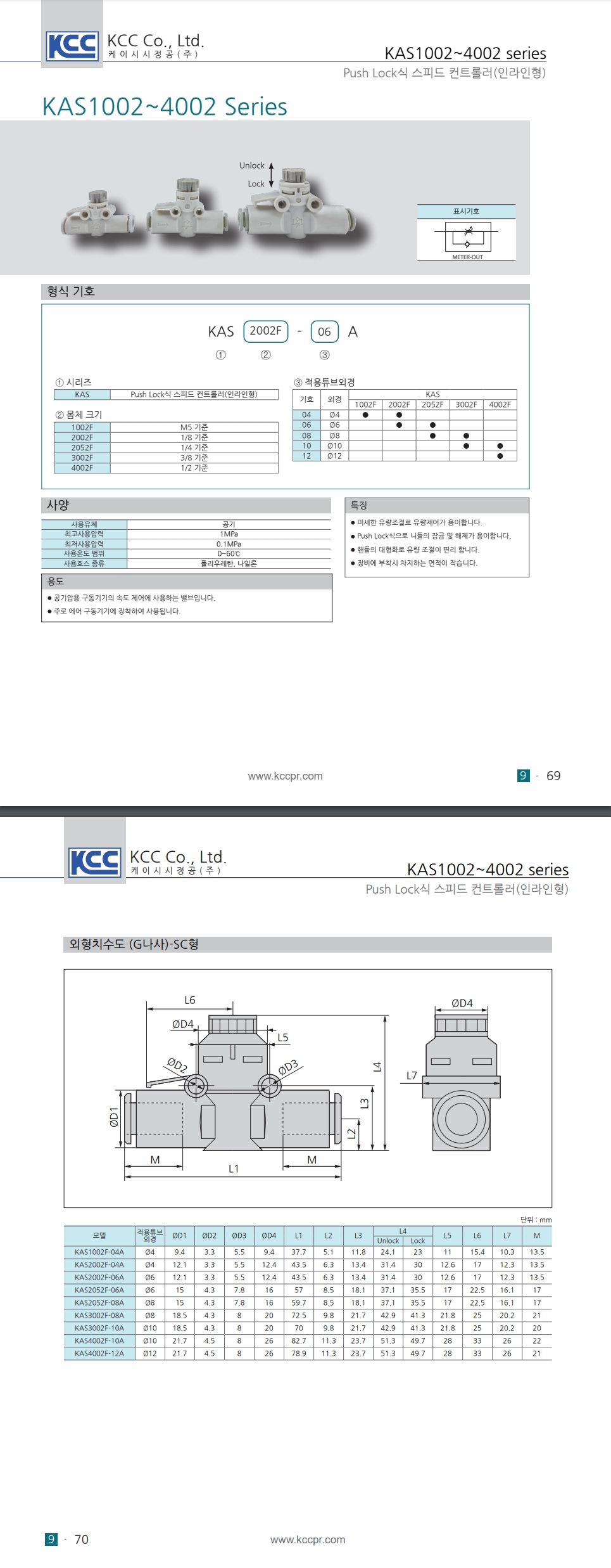 푸쉬 락 식 스피드 컨트롤러 인라인 타입 미세한 유량조절로 유량제어가 용이합니다. Push Lock 니들 잠금 및 해제가 용이합니다. 핸들 대형화로 유량 조절 편리합니다. 장비 부착 시 차지 면적이 작습니다. 공기압용 구동기기 속도 제어 사용 밸브입니다. |
