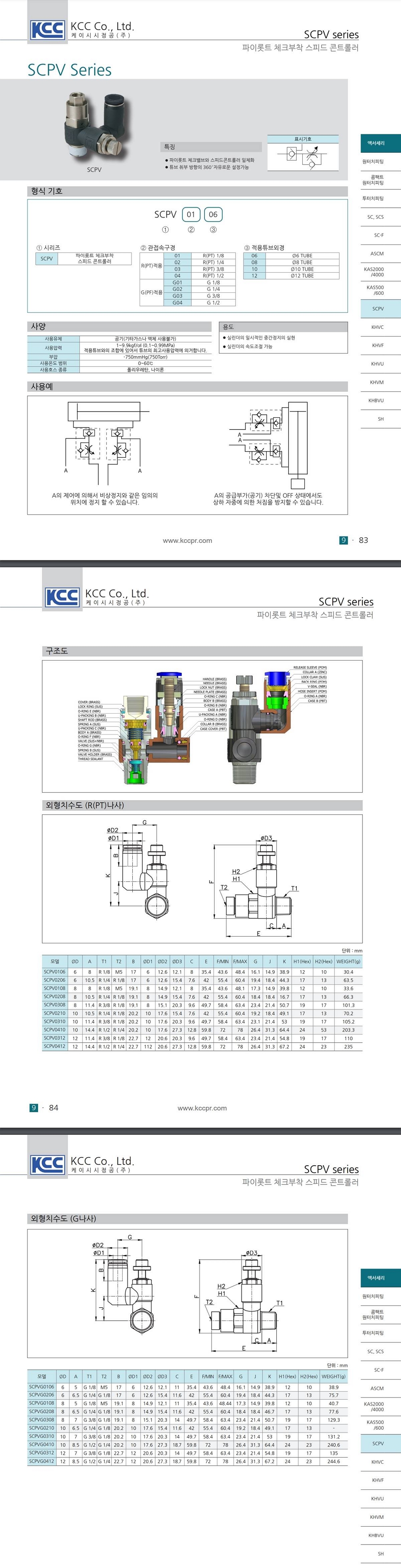 SCPV 시리즈 파이롯트 체크부착 스피드 콘트롤러 / 나사R(PT) - 튜브(metric)