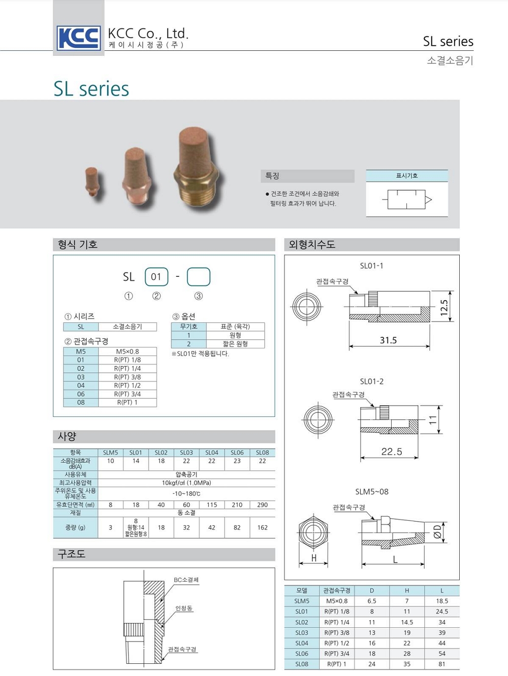 SL 시리즈 소결소음기 / 나사R(PT) 황동 STS316