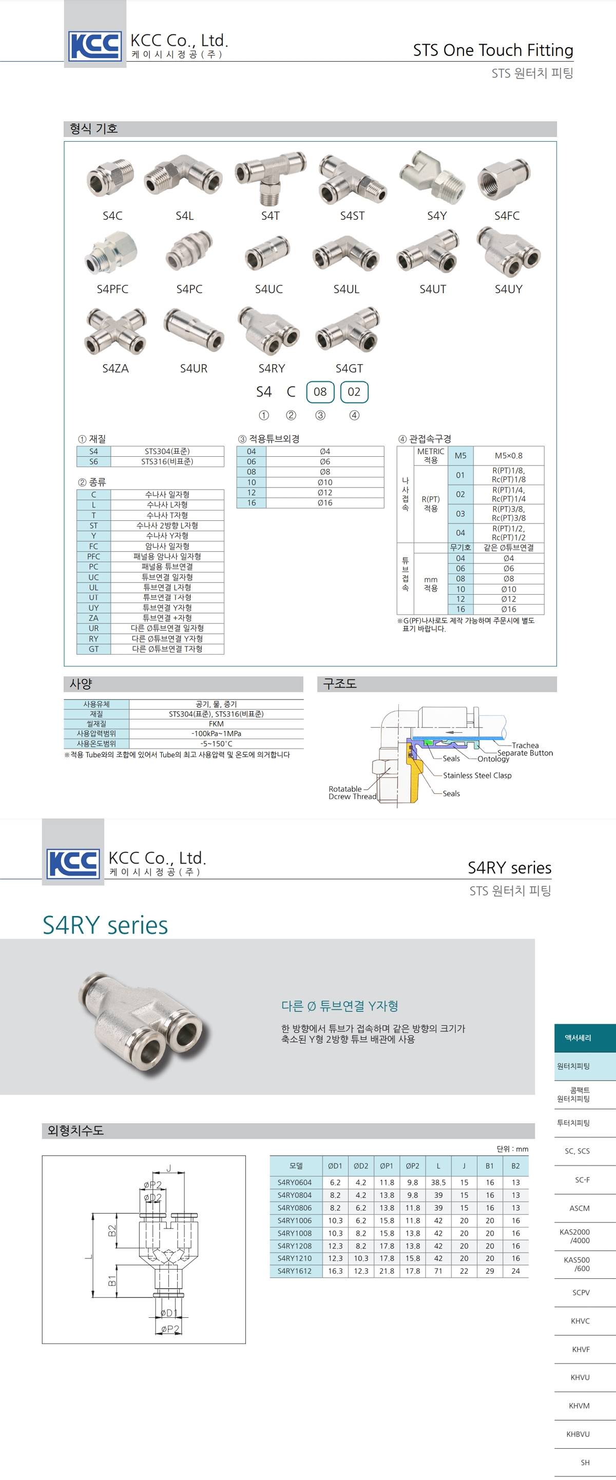 STS 원터치 피팅 STS One-touch Fitting 몸체 재질은 STS304(표준)입니다. STS316은 별도 문의 바랍니다. 화학약품 사용 환경에 사용 가능합니다. 고온의 유체 및 환경에서 사용 가능합니다. 전수검사로 완벽한 품질관리를 거쳐 출하됩니다. 스테인리스 몸체로 강도가 높고 내구성이 우수합니다. 자동차, 휴대전화 등 2차전지 생산 공정에 적용 가능합니다.(구리/아연 미사용) |
