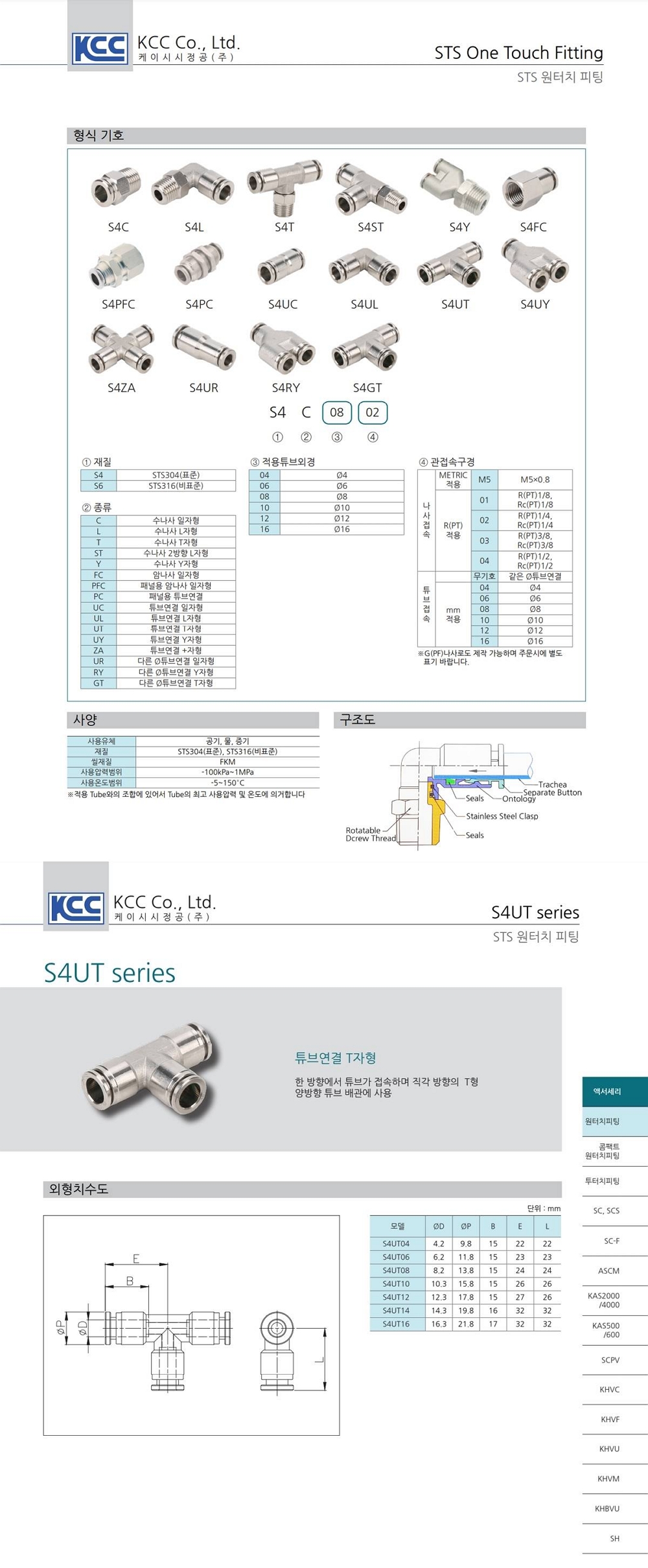 STS 원터치 피팅 STS One-touch Fitting 몸체 재질은 STS304(표준)입니다. STS316은 별도 문의 바랍니다. 화학약품 사용 환경에 사용 가능합니다. 고온의 유체 및 환경에서 사용 가능합니다. 전수검사로 완벽한 품질관리를 거쳐 출하됩니다. 스테인리스 몸체로 강도가 높고 내구성이 우수합니다. 자동차, 휴대전화 등 2차전지 생산 공정에 적용 가능합니다.(구리/아연 미사용) |