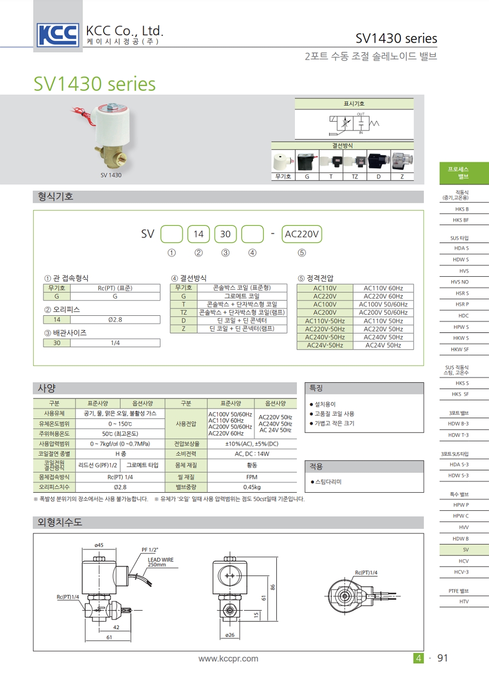 | 안내사항 | 상품하자 및 오배송을 제외한 교환 반품 어렵사오니 구매 전 신중한 사양 확인 부탁 드립니다. 표준품 외 별도 문의 바랍니다. (기타전압, 50Hz 전용 코일, G 타입 배관 접속 등) 보유 상품 사진 또는 모델명, 필요 스펙 사항 전달 주시면 보다 정확한 상품 선정 가능합니다. |