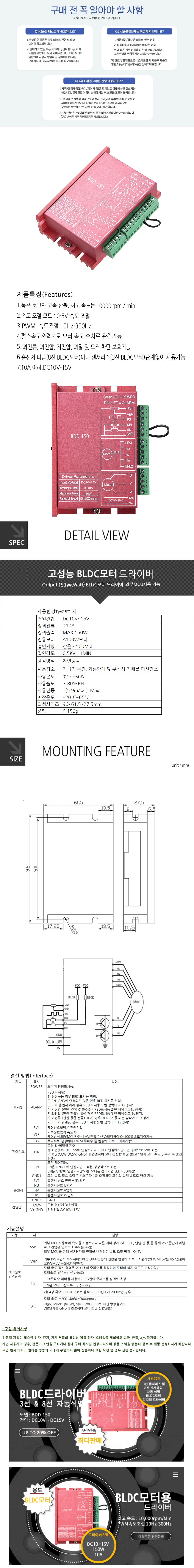 고성능 150W 급 10~15V 제어 (정격 10A 이하) 최고속도 10000 rpm/m |