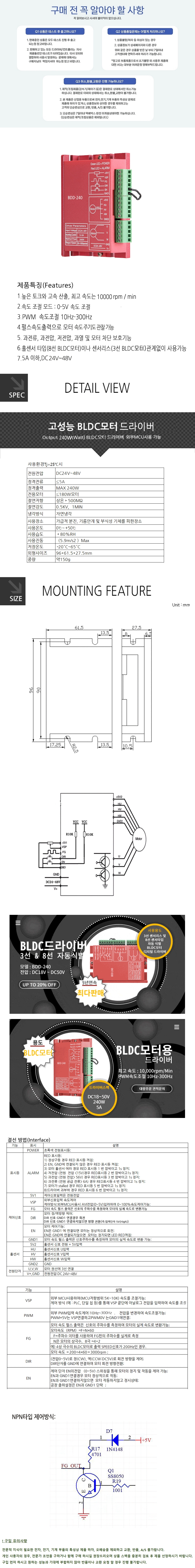 고성능 240W 급 18~50V 제어 (정격 5A 이하) 최고속도 10000 rpm/m |