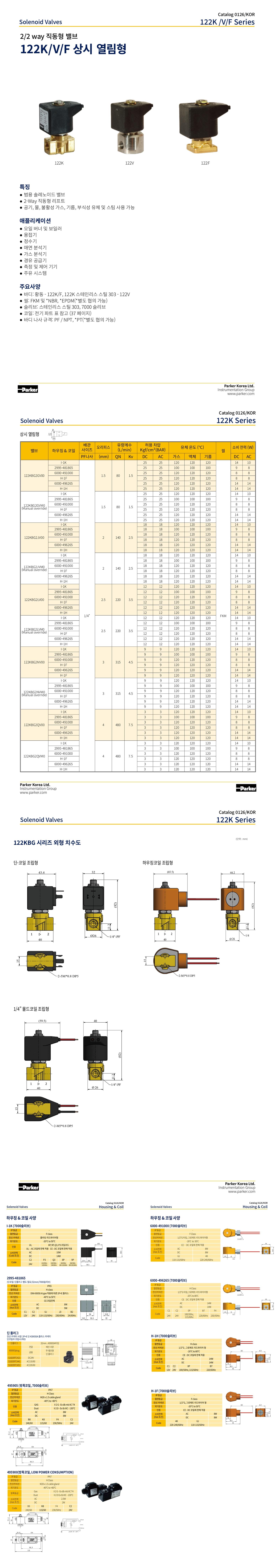 물 공기 기름 불활성가스 황동 FKM 1/4 (8A) 2 (Kv2.5) 금속하우징(G1/2부싱) AC220-240V/60Hz, 8W 18 7일 122K028