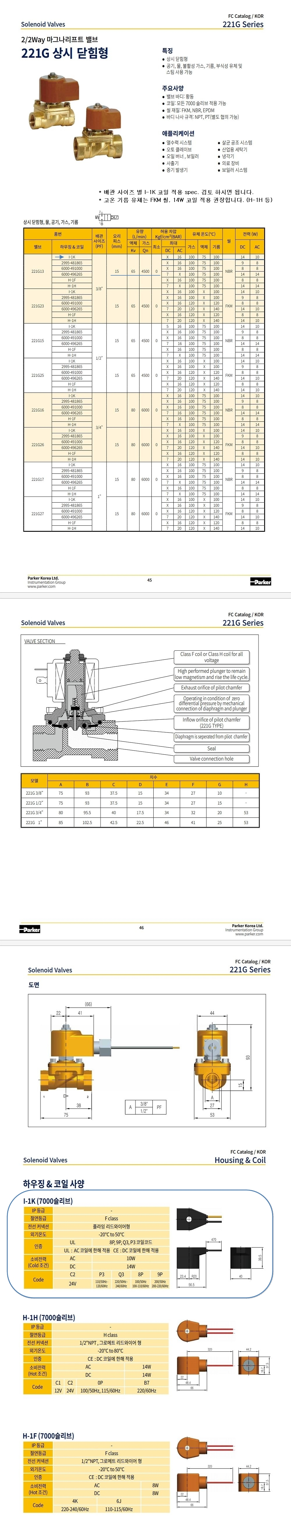 221G 시리즈 PF 3/8(10A) 1/2(15A) 3/4(20A) 1(25A) 범용 / DC전압 max 7 bar