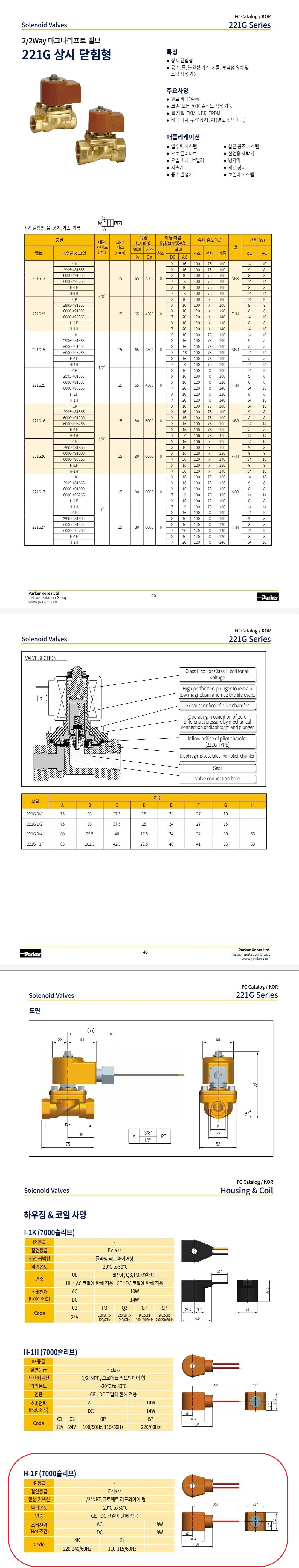 221G 시리즈 PF 3/8(10A) 1/2(15A) 3/4(20A) 1(25A) 범용 / DC전압 max 7 bar