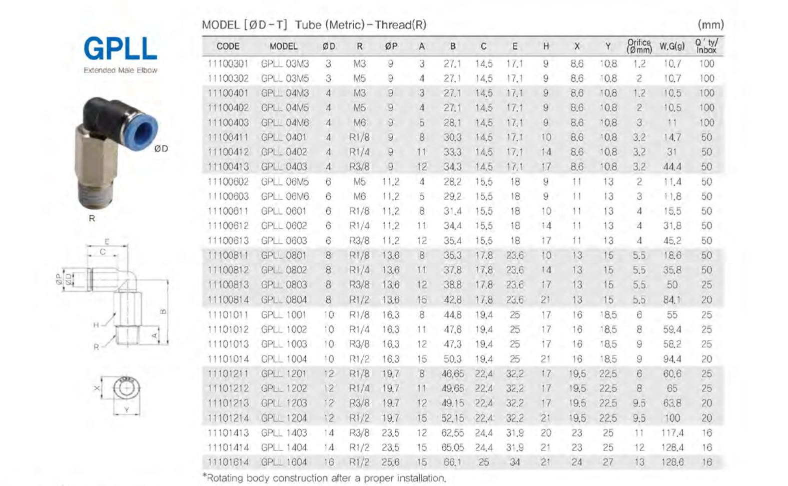 ● 원터치 피팅 One-touch Fitting 튜브를 한동작으로 쉽게 접속할 수 있습니다. PC Type은 내측에 육각렌치의 가공으로 협소한 장소의 배관시에 효율적입니다. 본체가 회전하는 구조이어서 튜브의 배관이 효율적입니다.(Elbow, TEE 형식) 나사부에는 가스켓, 오링 및 테프론 처리가 되어 있습니다. |