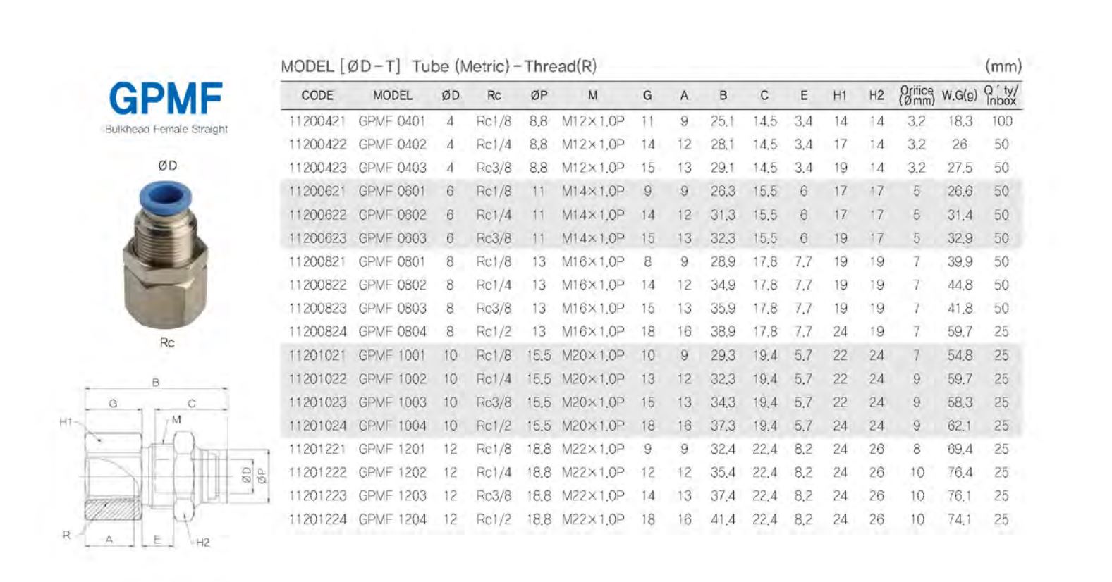 GPMF 암나사 일자형 / 튜브(metric)-나사(R, PT)