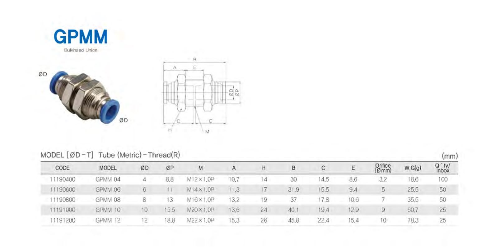 GPMM 튜브연결 일자형 / 튜브(metric)