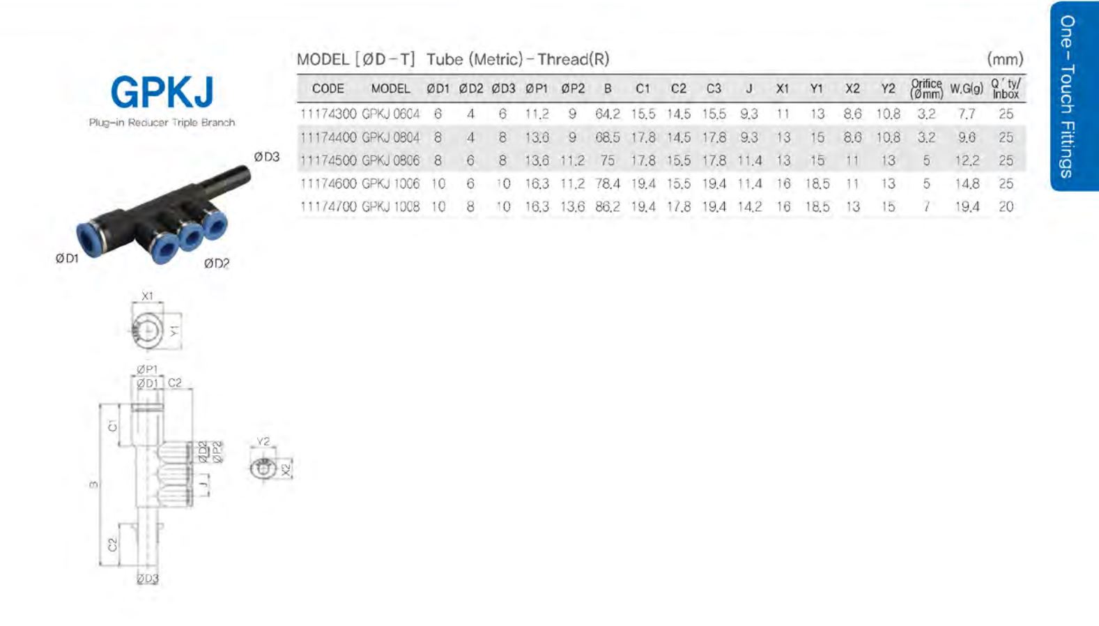 | 체크포인트 | - 사용유체 : 공기 - 사용압력 : 0~284psi / 0~20kgf/cm² - 부압 : -29.5 in Hg / -750 mmHg(-750Torr) - 사용온도 : 32~176°F / 0~80°C - 사용튜브 재질 : Polyurethane and Nylon |