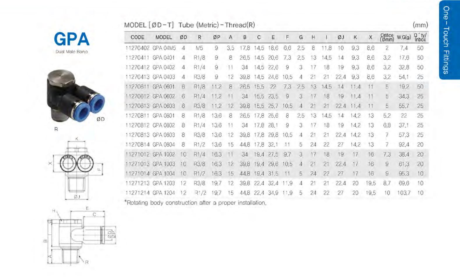 상세정보 ● 원터치 피팅 One-touch Fitting