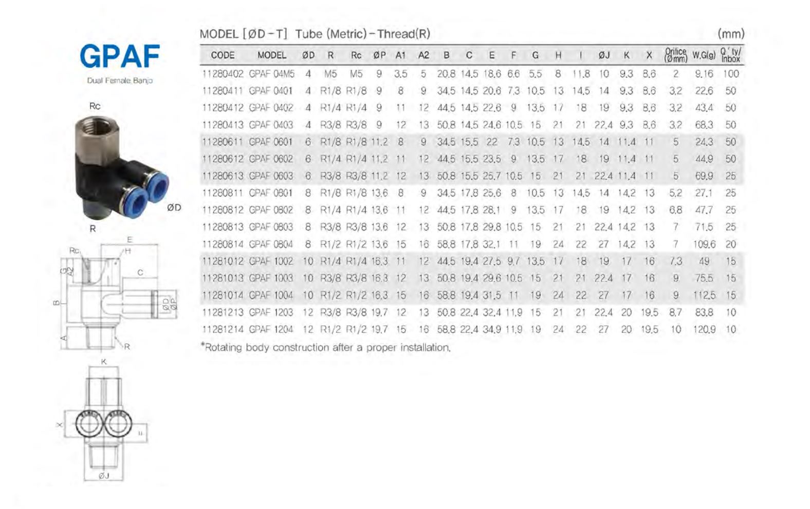 GPAF / 튜브(metric)-나사(R, PT)