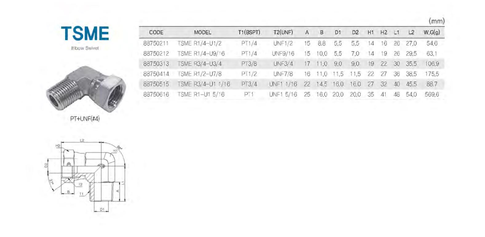 | 체크포인트 | - 사용유체 : 공기, 물, 오일 - 사용 온도 범위 : -40°C~80°C - 도금 종류 : 3가 백색 아연도금 |