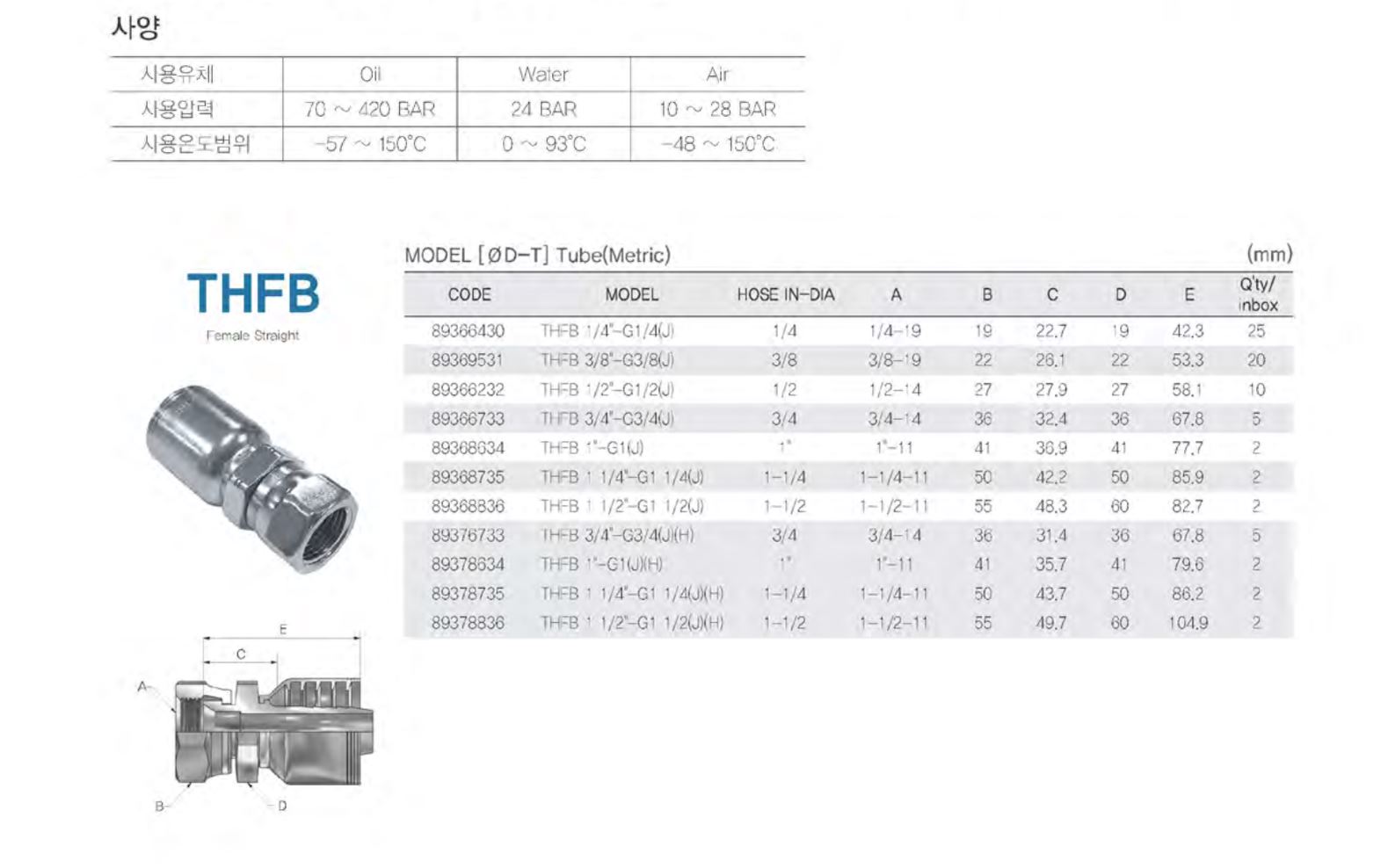 ● 호스 피팅 Hose Fittings 유압 및 공압으로 작동하는 모든 장치들의 압력 전달 라인에 적용 가능합니다. 각종 건설 및 공사 현장에 사용되는 굴삭기, 지게차, 로더에 사용됩니다. 농업 전반에 사용되는 농기계 및 산업용 각종 기계(프레스, 선반, 단조기)등 전 분야에 사용됩니다. 글로벌 제조 규격(SAE, JIS, DIN)을 만족하는 제품입니다. 국산 원자재의 적용으로 품질이 균일합니다. 다양한 사용 압력 범위를 가지며 체결력 및 내구성이 우수합니다. |