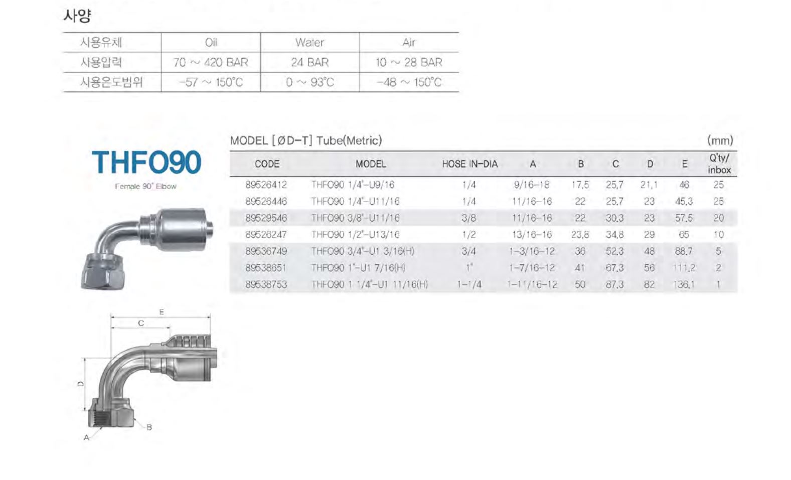THFO90 / 호스 내경(inch)-나사(UNF)