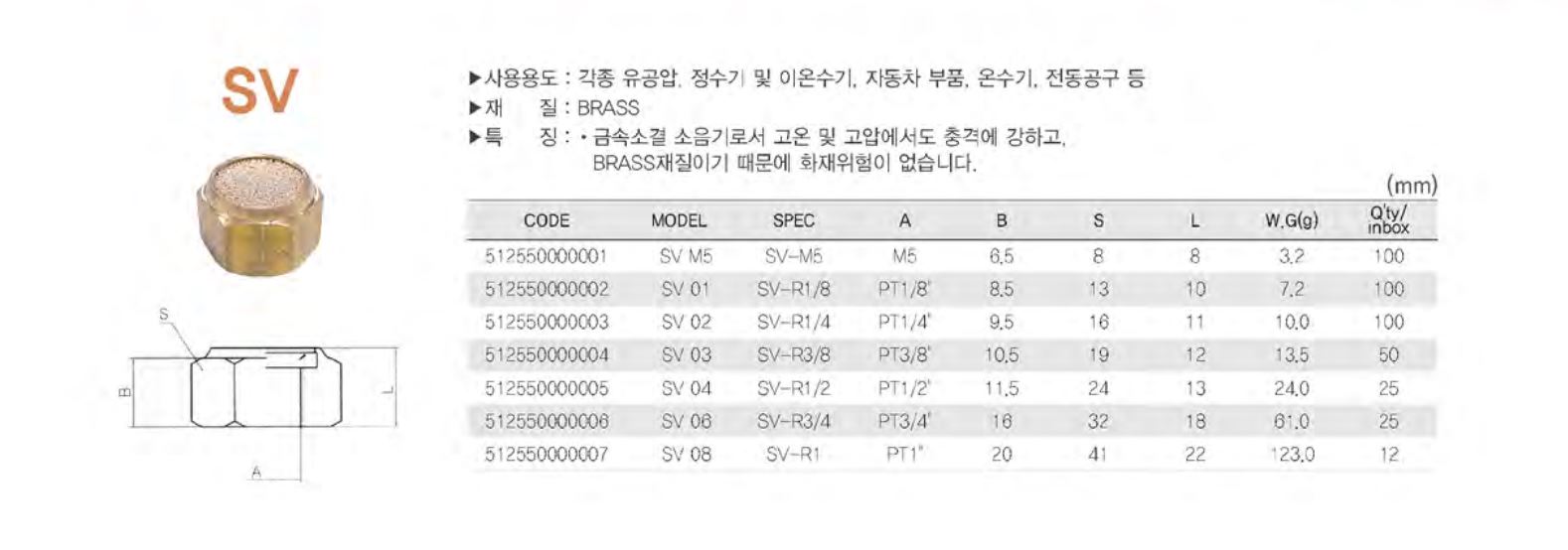 ● 소음기 Silencer 각종 소음이 발생되는 기기의 배기 포트에 설치하여 대기로 배출되는 공기압의 소음을 감소하는데 사용합니다. 소음 효과가 뛰어납니다. 각종 재질에 따라 선택하여 사용이 가능합니다.(BRASS, STAINLESS, STEEL, PLASTIC, AL) 내구성이 오래가며, 사용 장소가 광범위합니다. 콤팩티형이어서 좁은 장소에서도 설치가 가능합니다. |