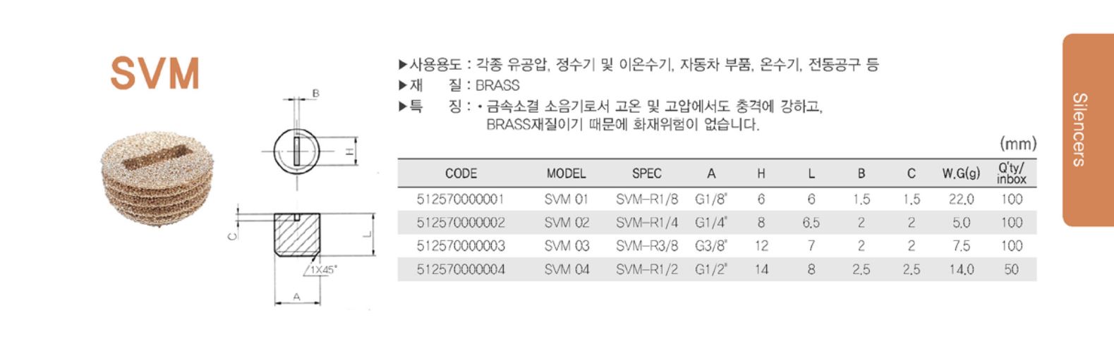 각종 소음이 발생되는 기기의 배기 포트에 설치하여 대기로 배출되는 공기압의 소음을 감소하는데 사용합니다.