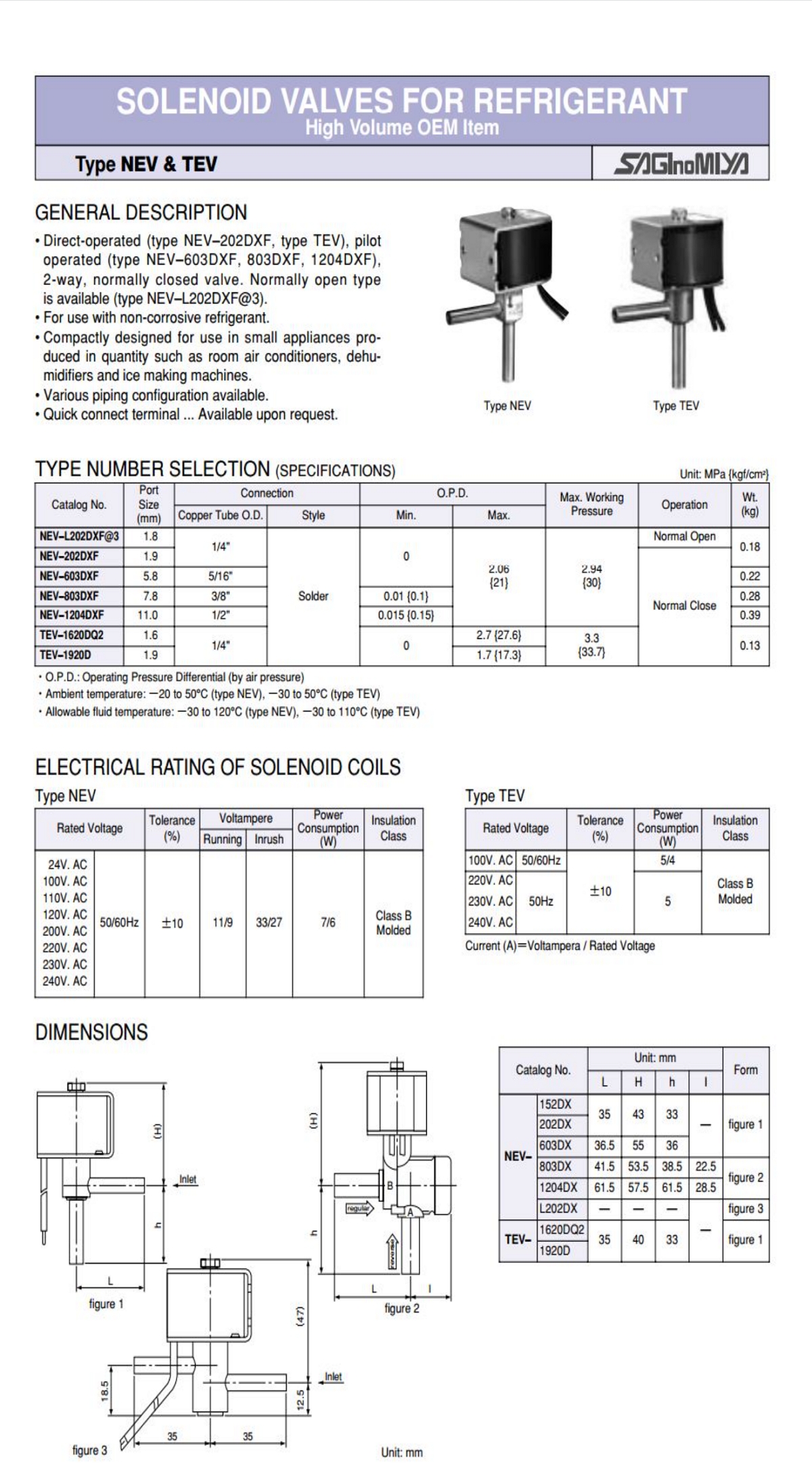 사기노미아 솔레노이드밸브 NEV 시리즈 / 용접타입 상시닫힘형