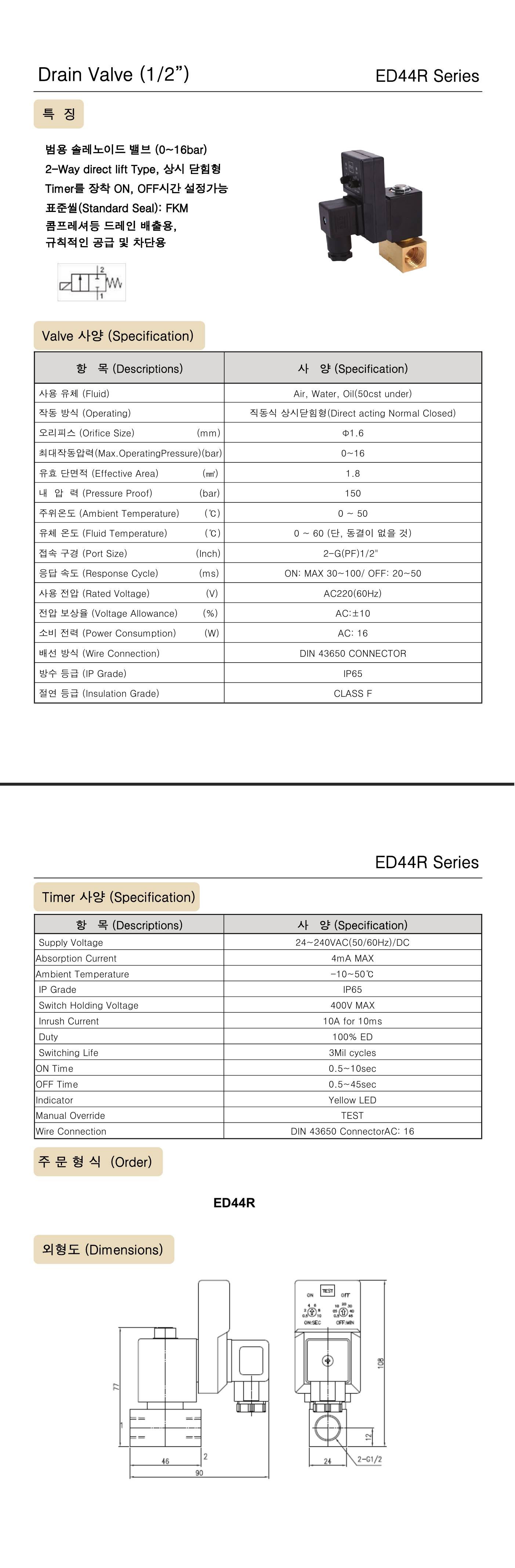 [ED44 시리즈] 타이머 밸브, PF(G) 1/2(15A), IP65 딘코일