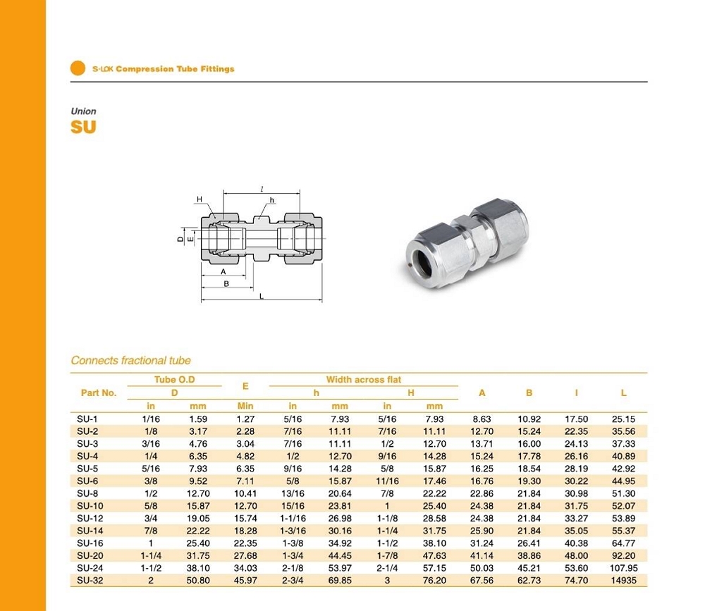 SU 시리즈 유니온 / mm 튜브용