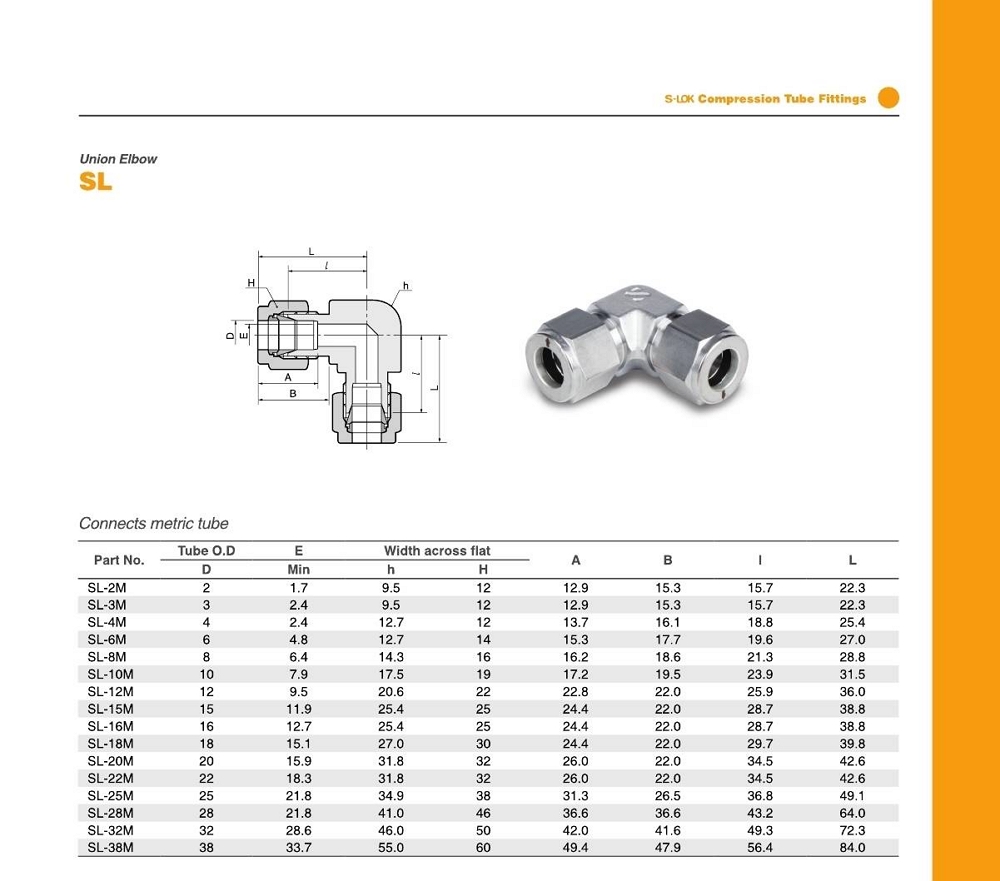 SL 시리즈 유니온 엘보 / inch 튜브용