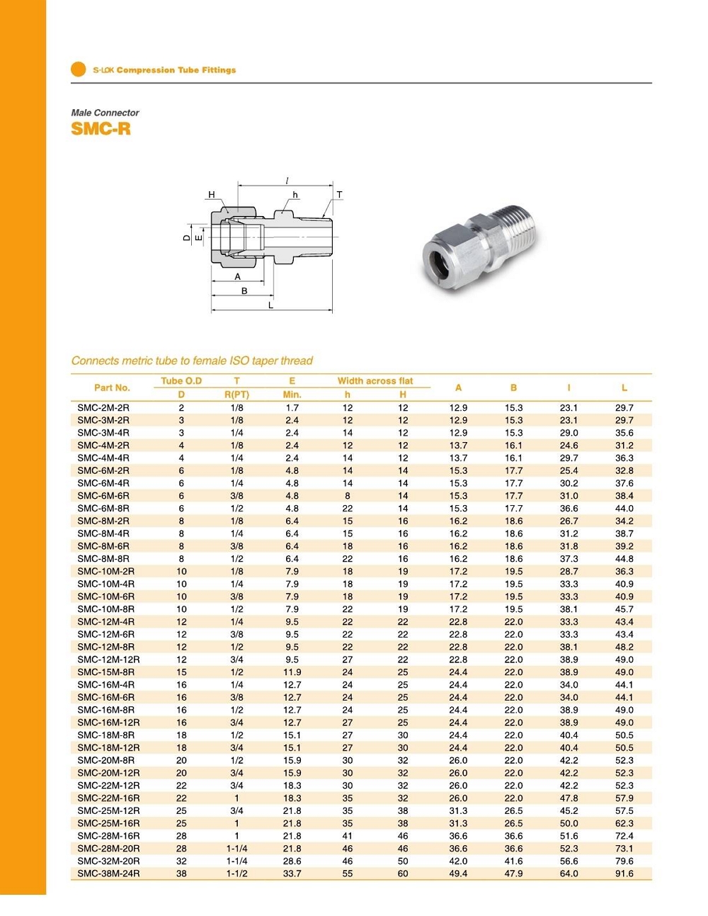 SLM 시리즈 메일 엘보 / mm 튜브 - 수나사 NPT (inch)