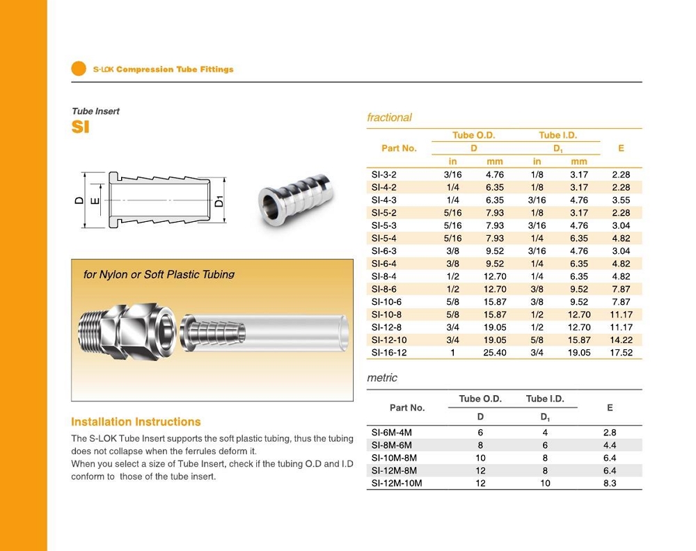 SI 시리즈 튜브 인서트 / 연질 플라스틱 튜브용