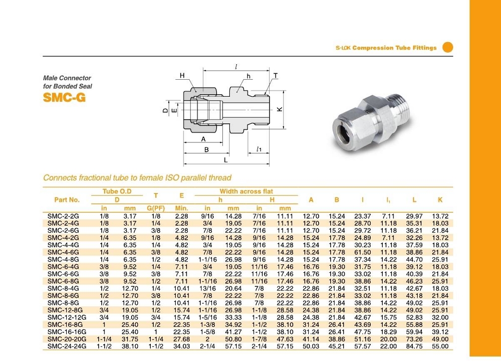 SLM 시리즈 메일 엘보 / inch 튜브 - 수나사 NPT (inch)