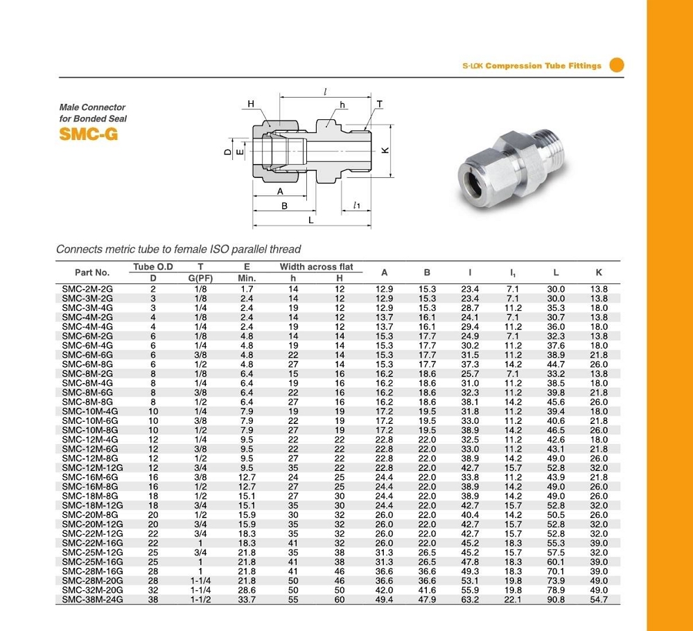 SOM 시리즈 메일커넥터 메탈가스켓용 / mm 튜브 - 수나사 G (inch)