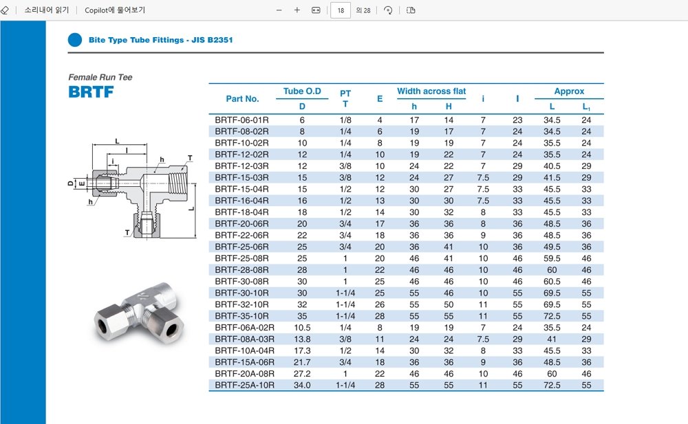 | 참고자료 | Byte Tpye 튜브 피팅 data 및 선정방법 (클릭) |