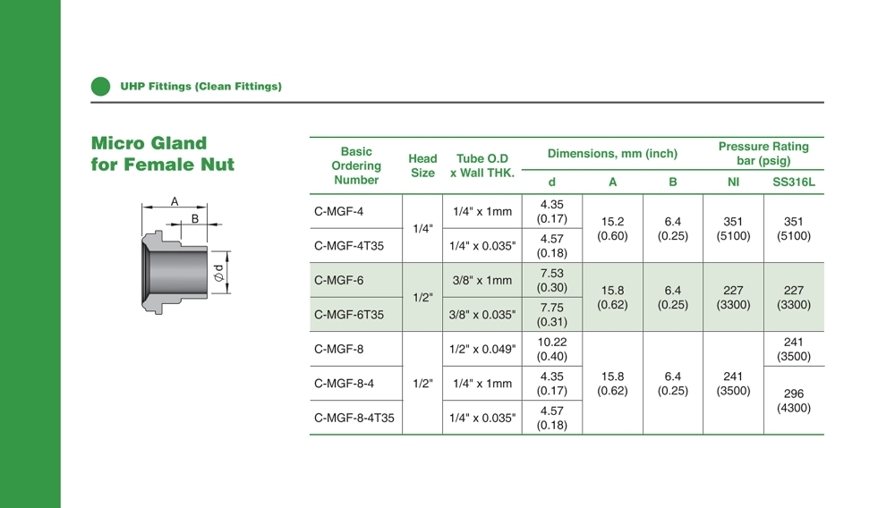 C-MGF 시리즈 Micro Gland (암너트용)