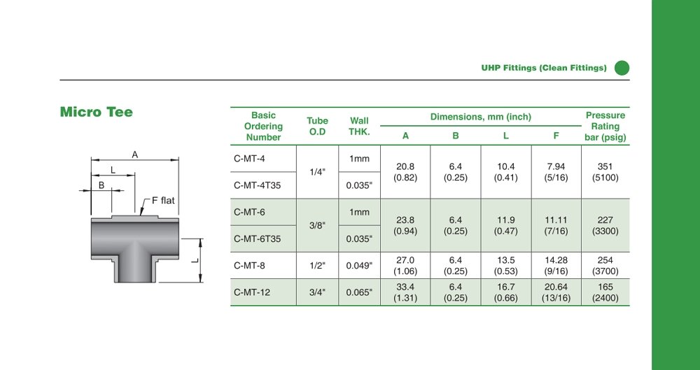 Micro Weld Fittings Stainless Steel 316L 가스 라인 적용, 컴팩트 디자인 (초)소형 튜빙 시스템 적합 좁은 공간 사용 용이 대형 용접 피팅 유량 값과 거의 동일 |
