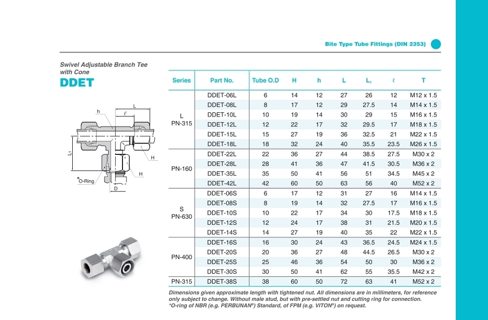 DIN2353 standard Two cutting edge single ring design Stainless steel 316 Metric tube O.D Lloyds / DNV / ABS approved |
