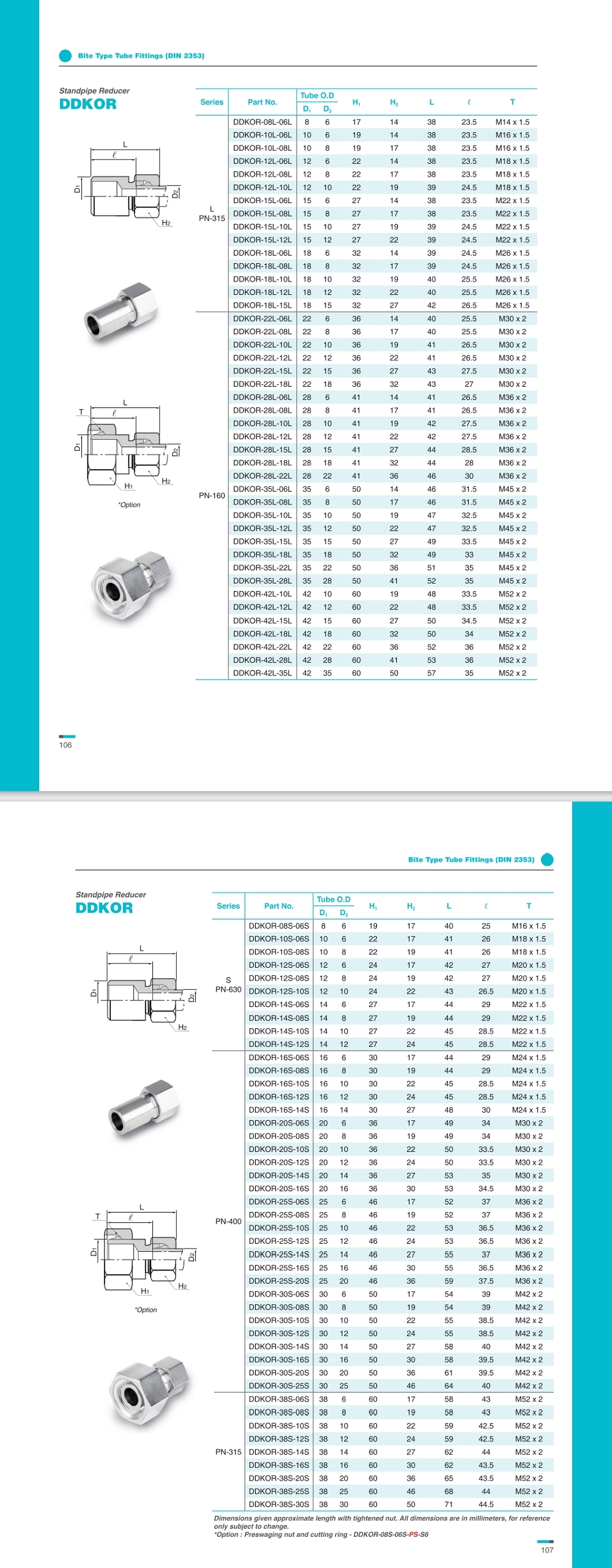 Preswaging nut 와 cutting ring (-PS) 적용은 별도 문의 부탁 드립니다.