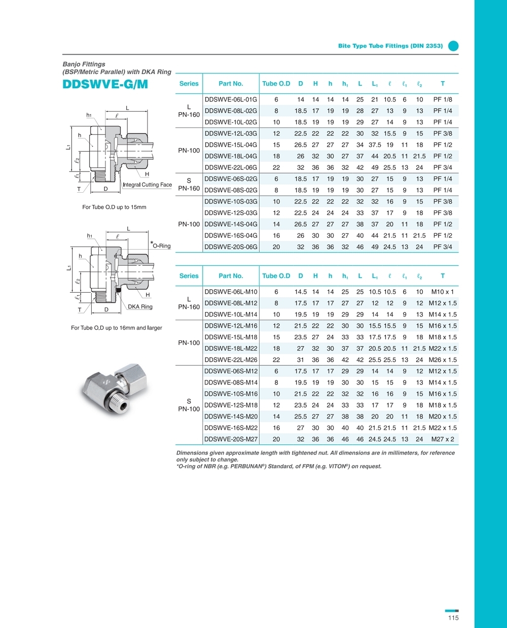 DDSWVE 시리즈 Banjo 반조 피팅 DKA-Ring 포함 / 평행나사 G