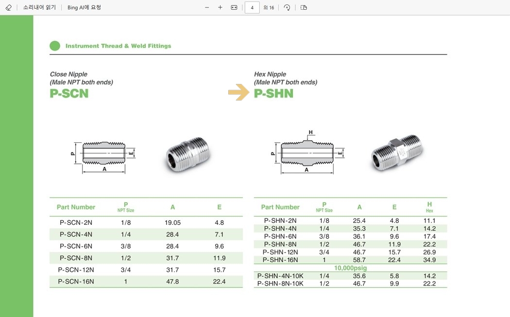 P-SHN 시리즈 육각 니플 Hex Nipple / NPT or R(PT) Thread