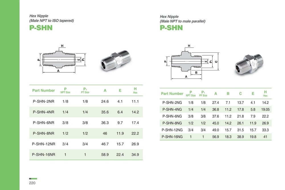 P-SHN 시리즈 육각 니플 Hex Nipple / NPT-PT or NPT-PF Thread