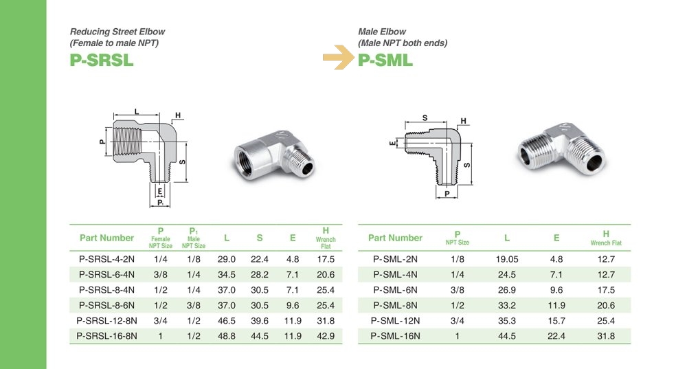 P-SML 시리즈 수나사 엘보 Male Elbow / NPT or R(PT) Thread