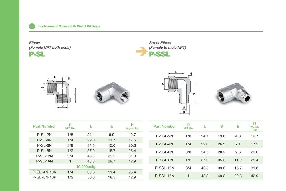 P-SSL 시리즈 암수 엘보 Female-Male Elbow / NPT or PT Thread