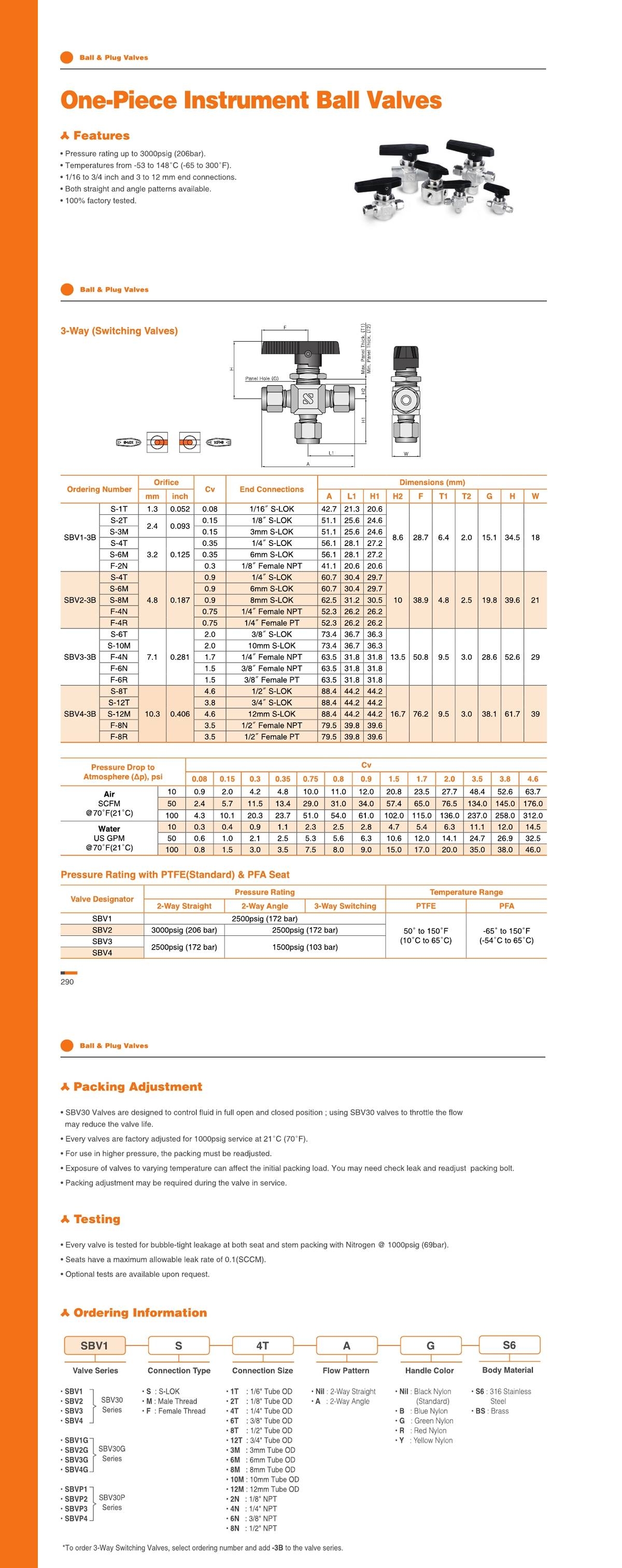 SBV30 시리즈 / 3 way 볼밸브 1500 ~ 2500 psi (SS316 재질)