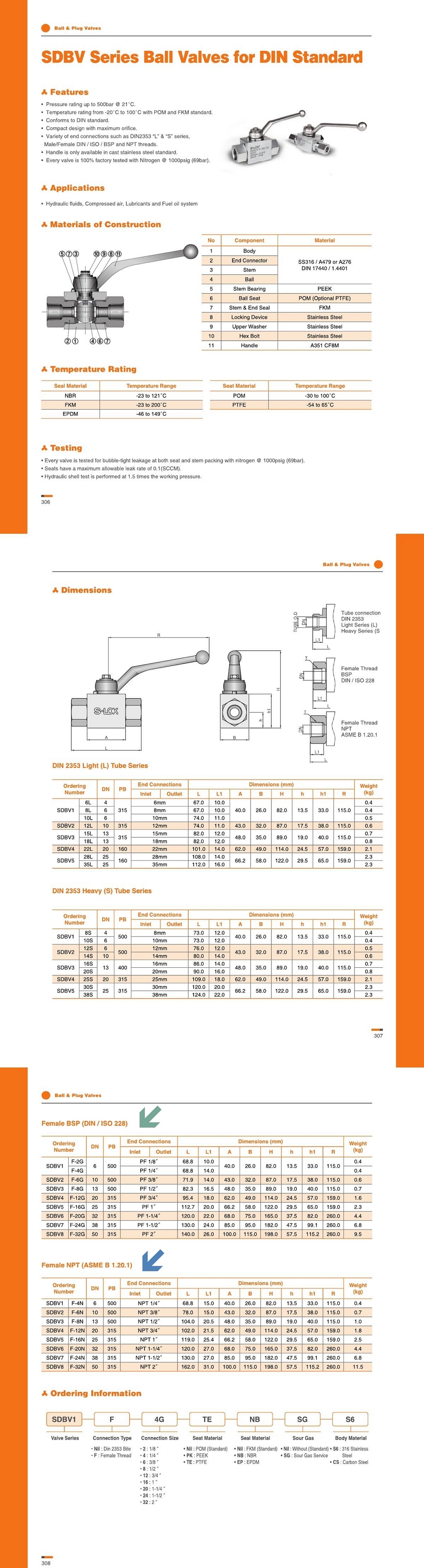 SDBV 시리즈 / 2way DIN 규격 암나사 고압 볼밸브 6000 psi (SS316 재질)