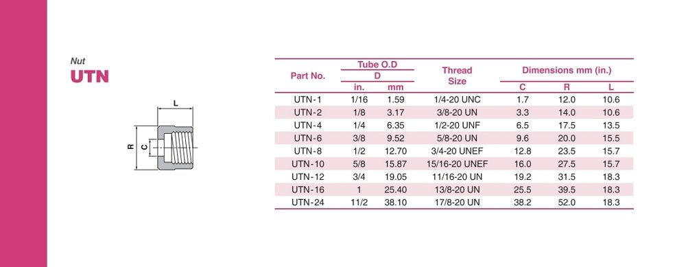 ULTRA VACUUM FITTINGS 재질: All Stainless Steel 316 and FKM O-Ring Max. 온도 범위: up to 204˚C Assembled easy finger-tight. (Knurled Nut) 헬륨 누설 테스트: max. leak rate of 4 x 10 -9 atm. cc/s at ambient temperature |