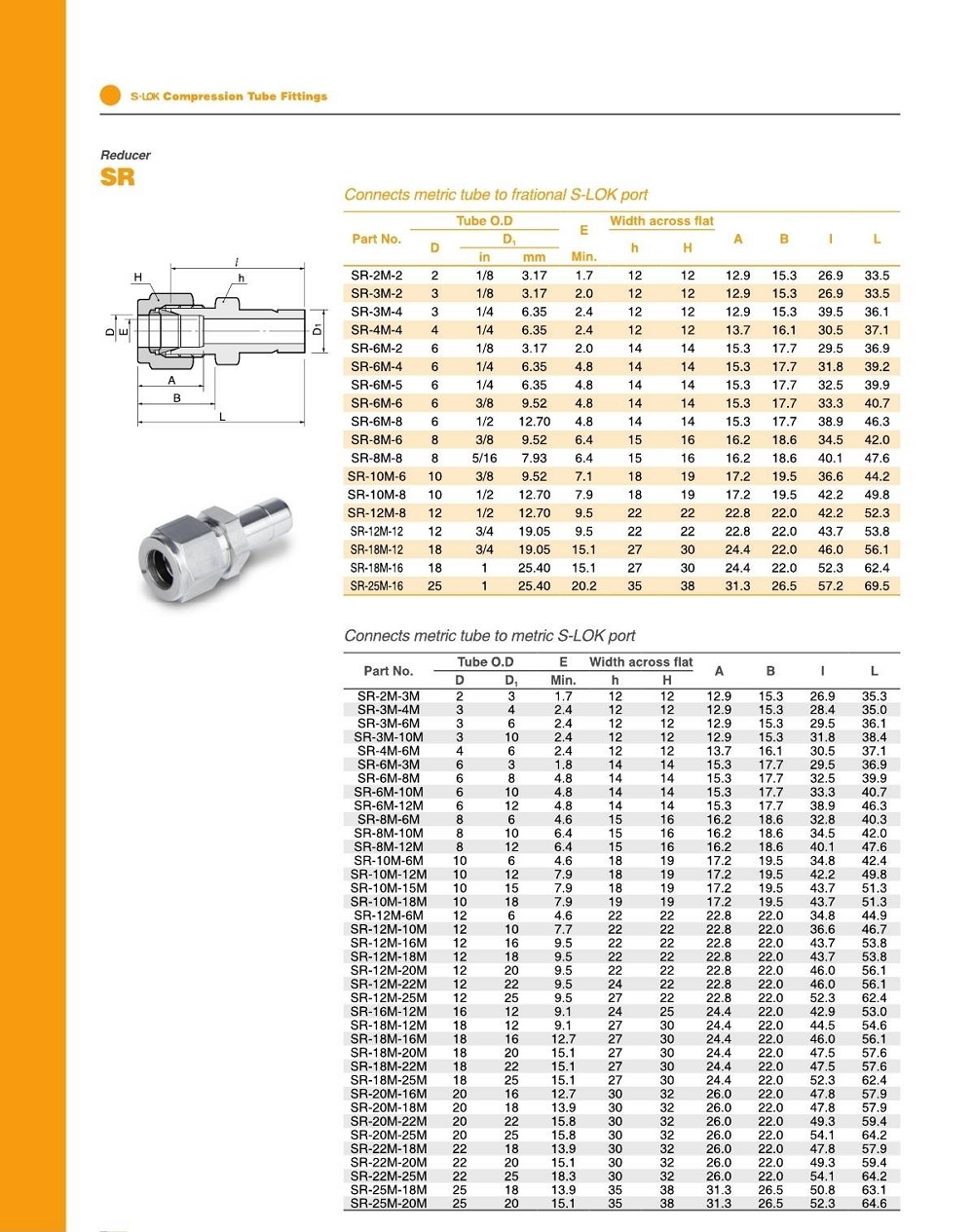 SR 시리즈 레듀서 / mm 튜브 - mm 아답타